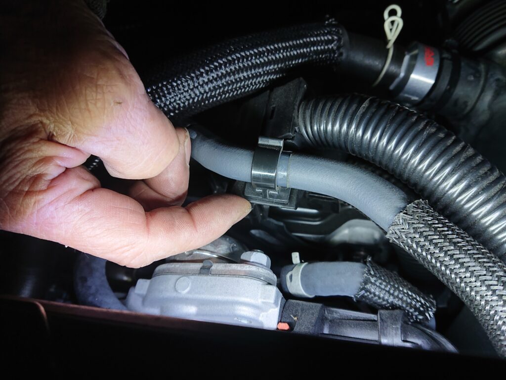 これがØ16のブローバイホース。箱を外したので、ホースを切ることなく、無加工で装着出来ました。