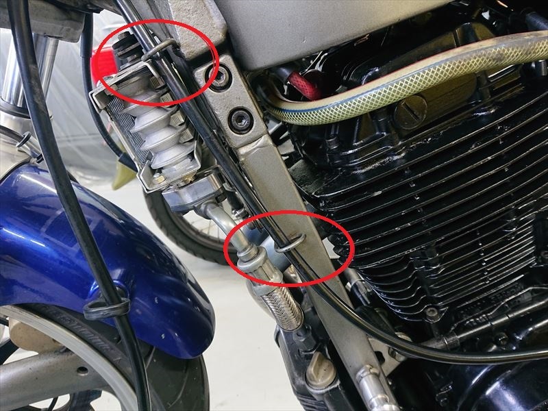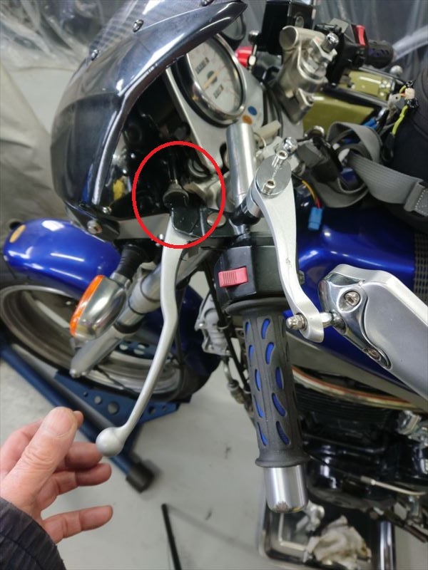 赤丸で囲ってある部分は、クラッチを握りきった時に、引っかけ金具とアウターワイヤが当たってしまう個体もありましたので、敢えて隙間を大きく取っています。